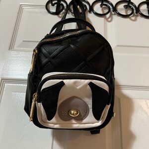 Betsy Johnson mini backpack puppy dog black/white gold quilted.