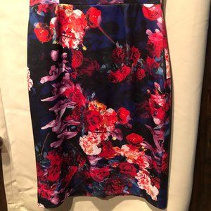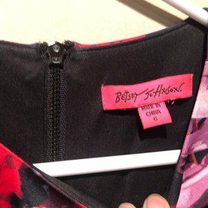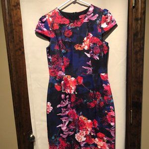 Betsey Johnson Floral Knee Length Knit Sheath Dress ~ Size 6 ~ Lined ~ Polyester/Spandex Shell ~ Polyester Lining ~ Dry Clean Only