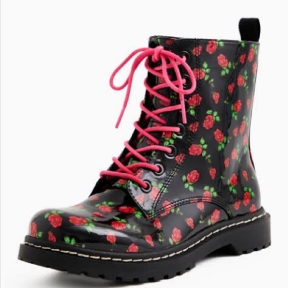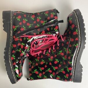 Betsey Johnson Floral Rose Combat Boot Patent Leather 8.5M Rocker Dark Princess