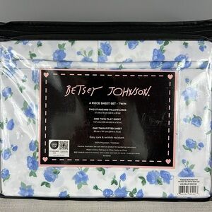 Betsey Johnson Floral Twin Sheet Set Blue White Super Soft 4 Piece Set NEW