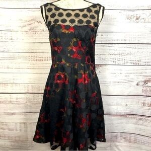 Betsey Johnson Floral sleeveless polka dot midi Size 4 low back flowy Dress