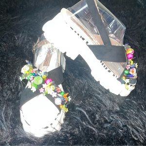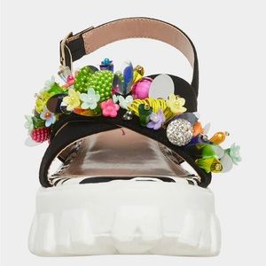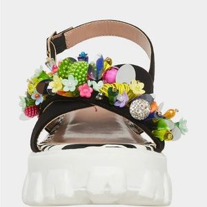 Betsey Johnson Frankee bead embellished platform sandals, size 8.5, NIB. The box is the one that came from Macy’s. Love love love but never worn and now am remote. Brand new. Perfect condition.
