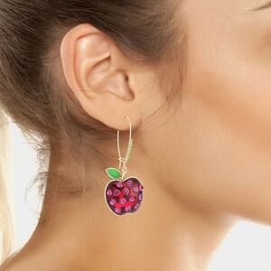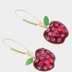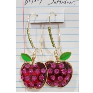 🍎 🔹️Betsey Johnson 🔹️Fuchsia Apple Earrings with Green Leaves NWT ✨️🍎