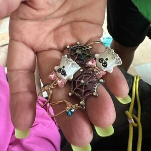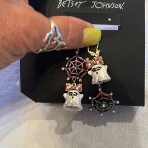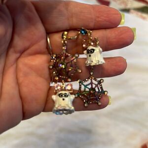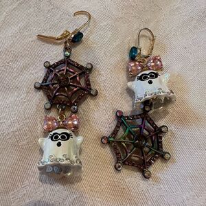 Betsey Johnson Ghost Spider Web Pierced Earrings Halloween Sparkly Rhinestones Halloween