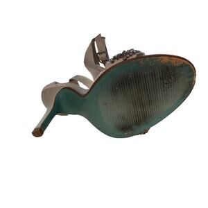 Betsey Johnson Gina White Satin Stiletto Heels Women’s 5B Beaded Ankle Strap GUC