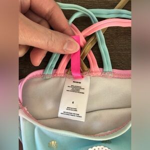 Betsey Johnson Girls 6 Sequins Clam Tie Dye Side Ties One-Piece Swimsuit - GUC!