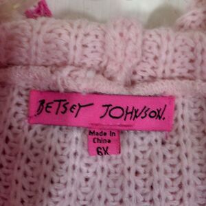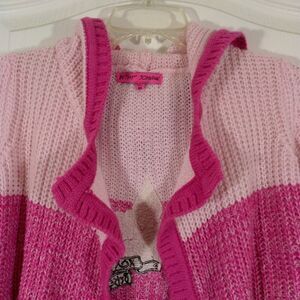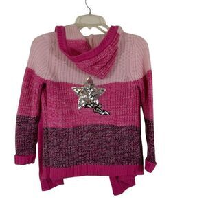 Betsey Johnson Girls 6X Cardigan Hooded Sweater Pink Open Front Sequin Star
