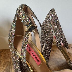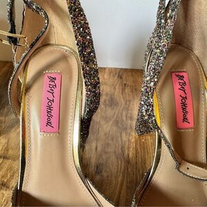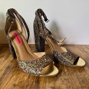 Betsey Johnson Glissten Heels Size 8 Rainbow Glitter Platform Block