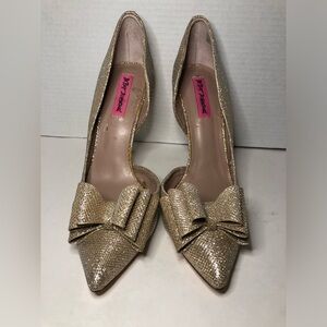 Betsey Johnson Glittering Gold Bow Heels size 11
