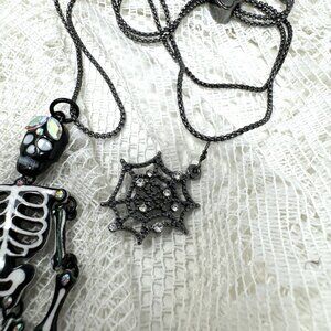 Betsey Johnson Glow In The Dark Skeleton & Spider Web Pendant Necklace