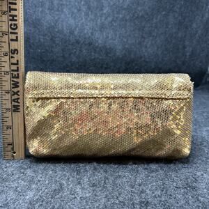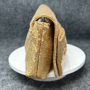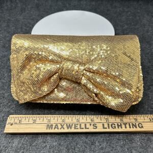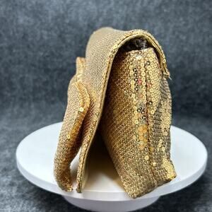 This gold sequin Betsey Johnson clutch is a perfect accessory for a night out, adding a fun and glamorous sparkle to any outfit. Betsey Johnson is known for her beautiful creative designs, often featuring bold patterns and unique embellishments that really make a statement.