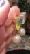 Betsey Johnson Gold Tone Iridescent Heart & Faux Pearl Cupid Motif Drop Earrings