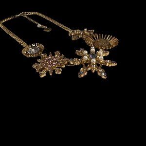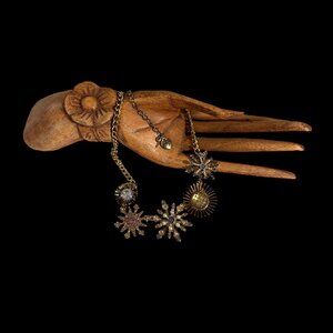 This statement necklace from Betsey Johnson combines elegance and bold design, featuring snowflake pendants adorned with crystals. The gold-tone chain adds a touch of luxury, making it a standout accessory for polished looks. Perfect for the holidays or even a Frozen costume.