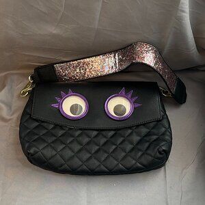 Betsey Johnson Trolls Googly Eye Shoulder Bag with detachable glitter strap.
