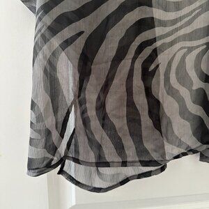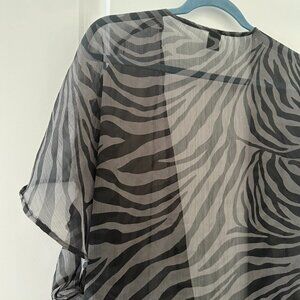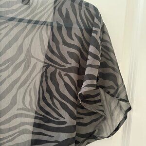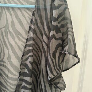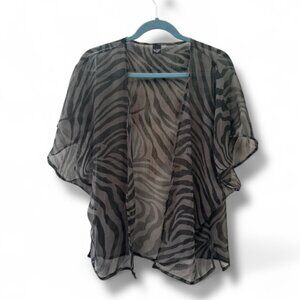 Y2K-era gray and black sheer zebra print pull on short sleeve kimono by Betsey Johnson. One size fits all. Pre-owned in very good condition, no holes or stains.