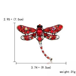 Elegant pink dragonfly brooch with sparkling gemstones. Perfect for adding a touch of glamour to any outfit.