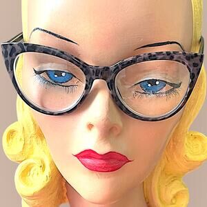 Betsey Johnson Grey Cheetah +2.00 Cat Eye Reading Glasses Readers Signed
