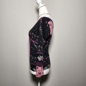 This floral Betsey Johnson top with pointelle accents is an ULTRA RARE product of a bygone 90s era... Perfect for lovers of cottagecore, fairycore, whimsy / whimsigoth, witchy / dreamy, goth, stargirl, rave, romantic, and balletcore aesthetics.