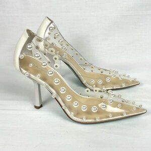 Betsey Johnson Halo Pump Clear Heels with Pearl Embellishments Sz 11 Party