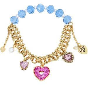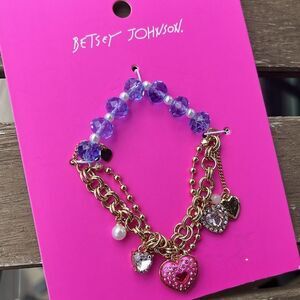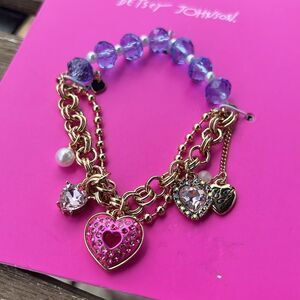 Betsey Johnson Heart Charm Beaded Stretch Bracelet NWT.