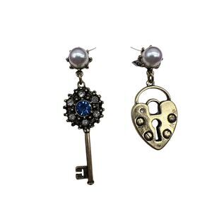 Betsey Johnson Heart Lock & Key Mismatch Drop Earrings