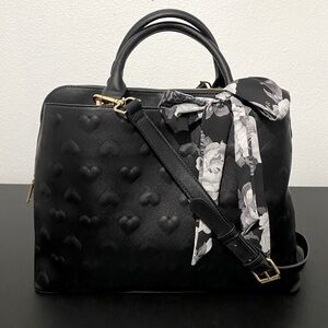 Betsey Johnson Valentine Heart Satchel Tote w/ Removable Crossbody Strap & Accent Bow Scarf