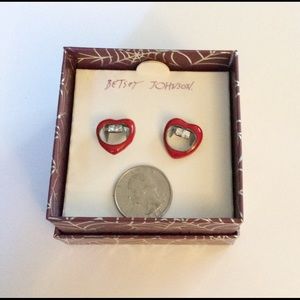 Betsey Johnson Heart with fangs Rhinestone Earrings NEW