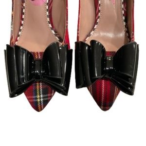 Betsey Johnson Heels Women’s Red Plaid / Patent Leather Bow Size 5.5 NWOT