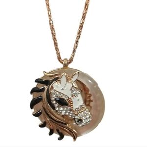 Betsey Johnson vintage enamel and rhinestone horse pendant necklace on a rose gold chain