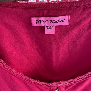 Betsey Johnson Hot Pink Dress with Lace Hook Front Corset Puff Sleeves MIDI XL