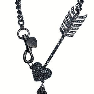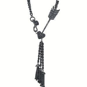 Betsey Johnson Icy Crystal Valentine Heart Cupid Arrow Chain Necklace 20" Tassel