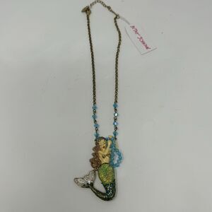 Betsey Johnson Into The Blue Sea Jeweled Crystal Blonde Mermaid Necklace RARE. Condition is New with tags. Shipped with USPS Ground Advantage.