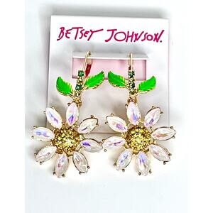 NEW Betsey Johnson Iridescent Stone FLOWER EARRINGS 2.5" Dangle Drop Daisy Flowers - New On Card!