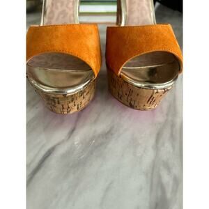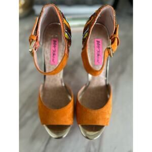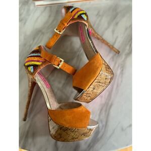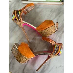 Betsey Johnson Izabell Orange Suede Beaded Cork Platform Heel