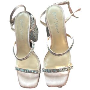 Stand out with a pair of shoes that are bold and bright. These never worn Jany Rhinestone platform sandals from Betsey Johnson feature a chunky silhouette, a strappy upper, and playful sparkling embellishments. There is writing on bottom of shoe I have not tried to remove. (See photos)