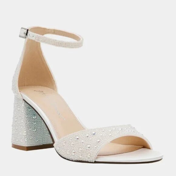 Super cute pearl encrusted Betsey Johnson, strappy with comfortable heel. Love them but they are too large. Great for engagement/bridal events.