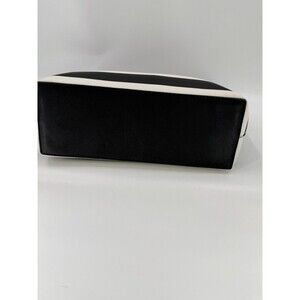 The Betsey Johnson KITSCH Black White Striped Pink Bow Large Tote Shoulder Bag is a stylish and versatile accessory for women. Featuring a black and white striped exterior with a pink bow accent, this tote bag has a rectangular shape and double handles in black. It is large with a depth of 5 inches and height of 10 inches, making it ideal for travel, parties, casual outings, or workwear. The coated faux leather exterior and metal hardware add a touch of sophistication, while the inner pockets provide functionality. This Betsey Johnson tote is a trendy addition to any wardrobe.