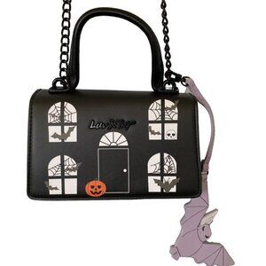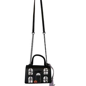 Betsey Johnson Kitsch Haunted House Crossbody Bag Bat Charm Black Halloween NWT