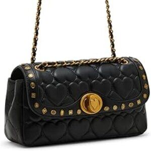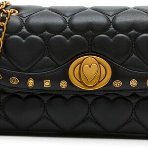 Betsey Johnson Kitsch Icon Quilted Hearts Flap Bag Black NWT