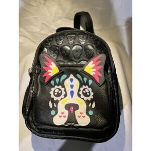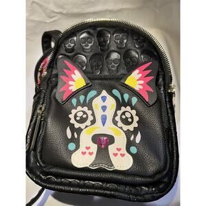 Betsey Johnson Kitsch Mini Backpack Sugar Skull Dog Day of the Dead Purse Bag.