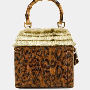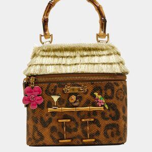 Betsey Johnson Kitsch Tiki Chic Bar Thatch Roof Leopard Printed Crossbody Bag