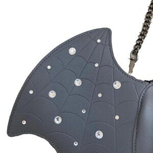 Betsey Johnson Kitsch XO BAT Halloween Rhinestone Studs Grey Crossbody Bag NWT