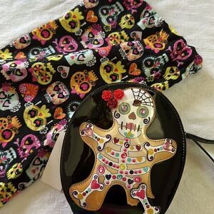 Betsey Johnson Kitsch Sugar Skull Ginger Bread Man Crossbody Handbag Shiny
