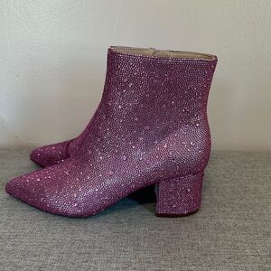 Betsey Johnson Kyla Pink Rhinestone Glitter Ankle Boots, Size 9