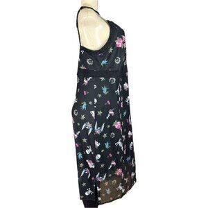 ITEM: Betsey Johnson L/0 Black Tattoo Icons Mesh Lined Surplice Neck Strappy Midi Dress