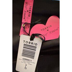 Betsey Johnson L Black Tattoo Icons Mesh Lined Surplice Neck Strappy Midi Dress