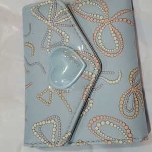 Betsey Johnson LBCash baby blue pink bow pearls pattern Luv Betsey wallet new with tags