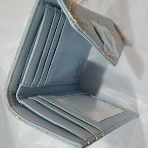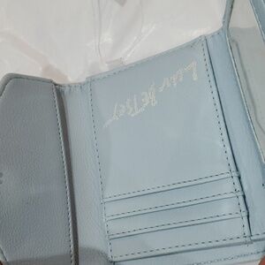 Blue Betsey Johnon wallet with ID slot, card slots and bills compartment