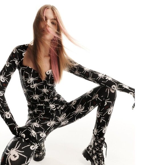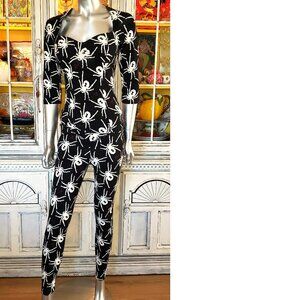 Betsey Johnson LTD Black Widow Spider Dress Top Leggings Pants Set Size S Y2K