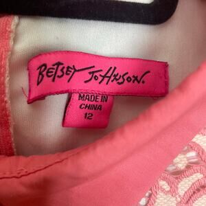 Charming and feminine, this Betsey Johnson Dress Size 12 features a peach-pink lace overlay with a sweet Peter Pan collar, giving it a preppy and vintage-inspired vibe. Perfect for parties, brunch, or special occasions, this dress combines playful elegance with classic Betsey Johnson style.